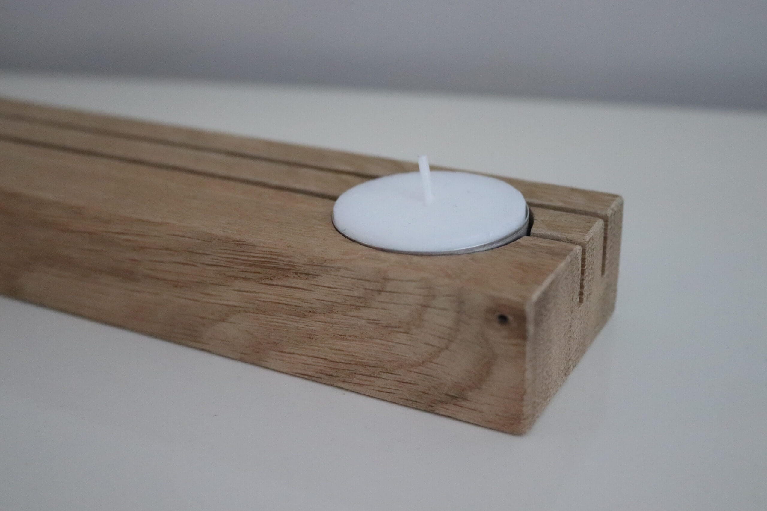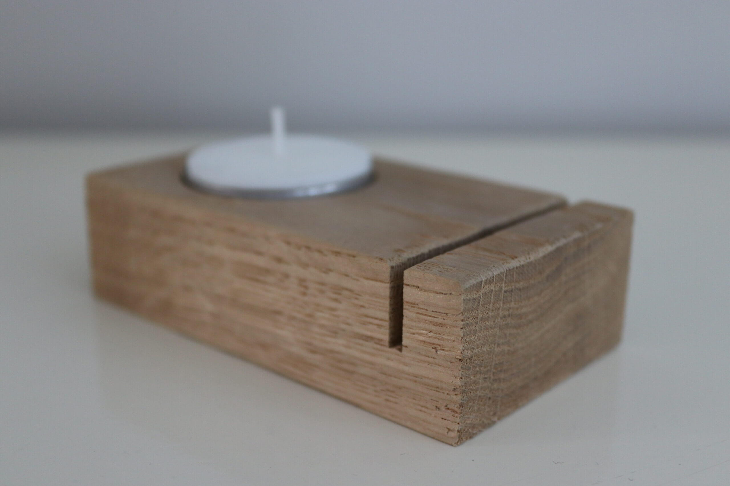Eikenhouten kaarthouder 3: Een kleinere variant van kaarthouder 2. De kaarthouder wordt inclusief kaarsje geleverd.